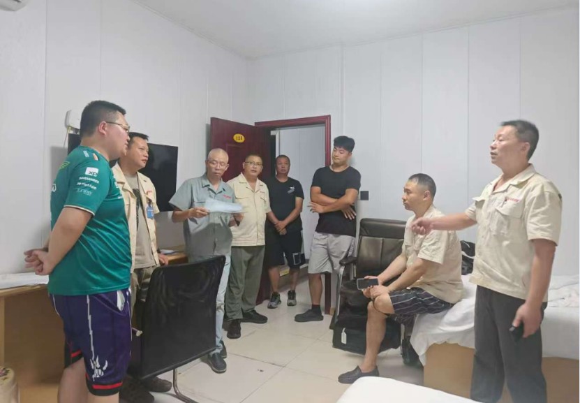 慰問過程中,劉總反復(fù)叮囑大家注意勞逸結(jié)合、科學(xué)安排作業(yè)時(shí)間,確保高溫天氣下的身體健康。特別強(qiáng)調(diào)車隊(duì)要嚴(yán)格落實(shí)高溫應(yīng)急預(yù)案,合理調(diào)整戶外作業(yè)時(shí)段,避免中暑事件和安全事件發(fā)生。檢查了試車隊(duì)的住宿防火、路試車輛、試車員個人防護(hù)、應(yīng)急防暑物資等。慰問檢查結(jié)束后,邀請大家共進(jìn)午餐。